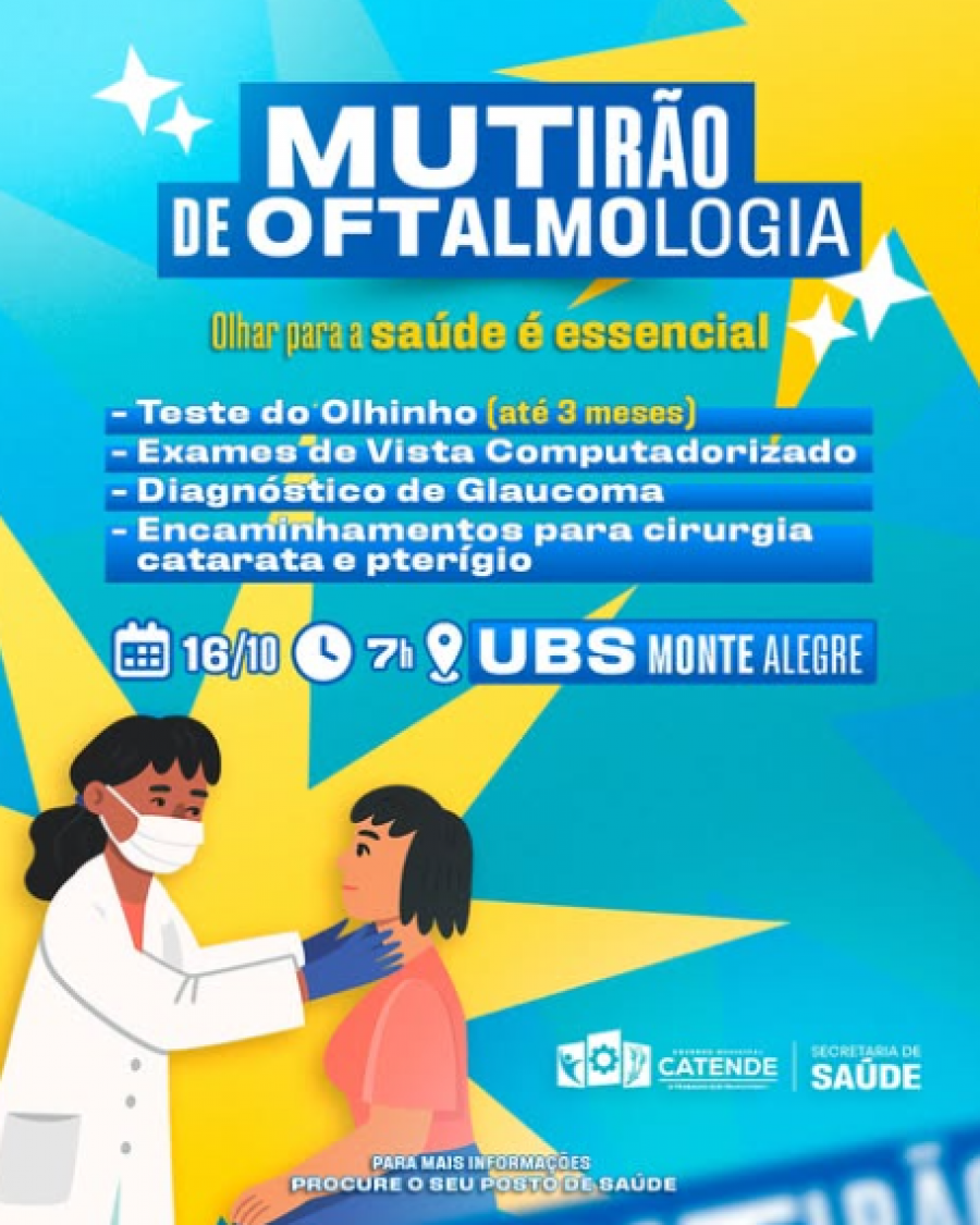 No dia 16/10, a partir das 7h, tem Mutirão de Oftalmologia na UBSMonte...