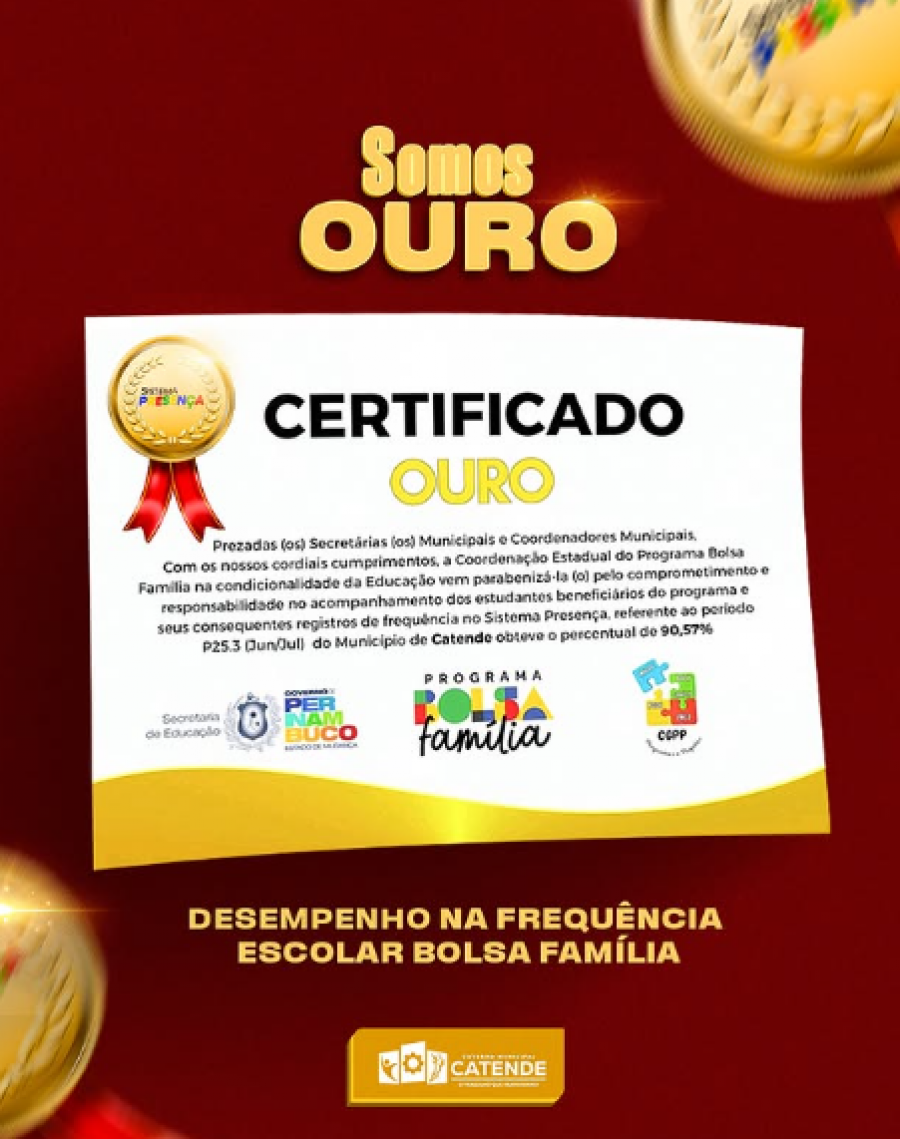 Nosso compromisso com a educação está dando frutos! 🌟Catende recebeu o Certificado Ouro do Programa Bolsa Família pelo...